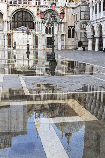 Historisches Domgebäude spiegelt sich in Pfütze