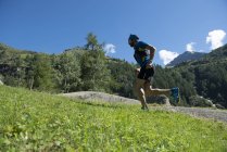 BENIN, AFRIQUE - 31 AOÛT 2017 : Vue de côté de la femme marchant sur la route et portant un panier avec de l'herbe sur la tête . — Photos de stock