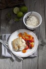 Pollo alla griglia con couscous e mais sulla pannocchia — Foto stock