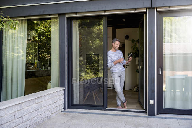 Улыбающийся мальчик лежит в ванной и смотрит в камеру — стоковое фото