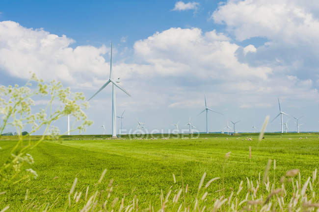 Ветряные турбины в зеленом ландшафте — стоковое фото