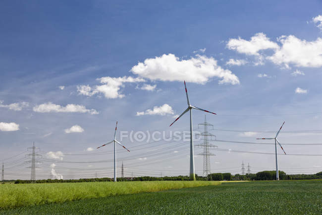 Ветряные турбины вращаются в сельской местности — стоковое фото
