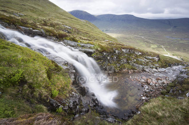 Идиллический вид на скалистые горы и озеро — стоковое фото