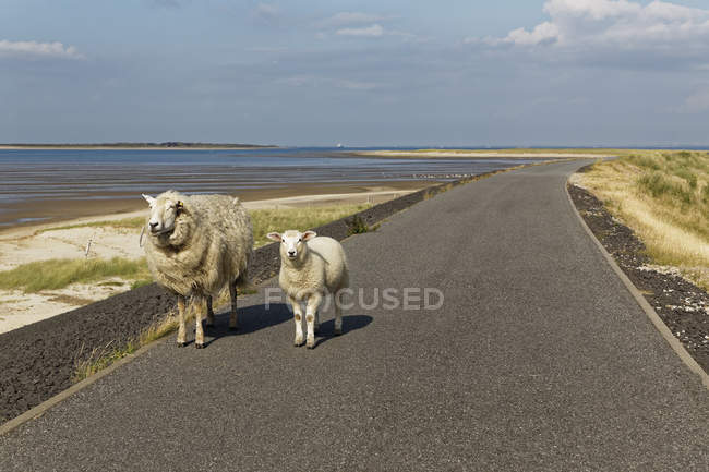 Крупный план милых овец на пастбище, смотрящих в камеру — стоковое фото