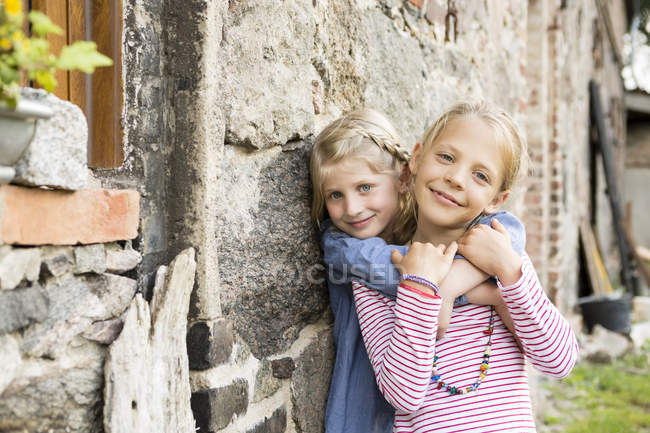 Двор с цветочными горшками между серой скалой старый дом с деревянными окнами в Пиренеях