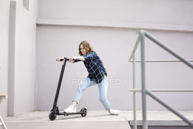 Девушка бежит мимо гаражной двери одетый как супергерой — стоковое фото