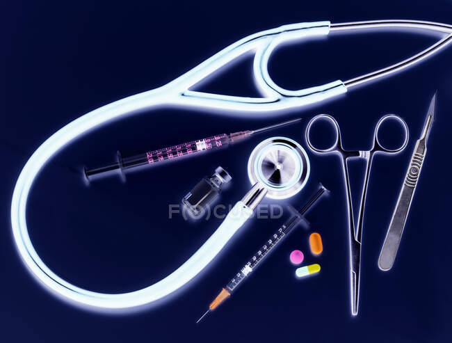 Interior of modern light empty dental office with chair and medical instruments and equipment placed around and white sink near wall