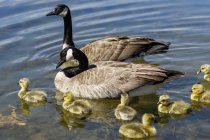 Крупним планом вид качки в озері з її Каченята — стокові фотографії