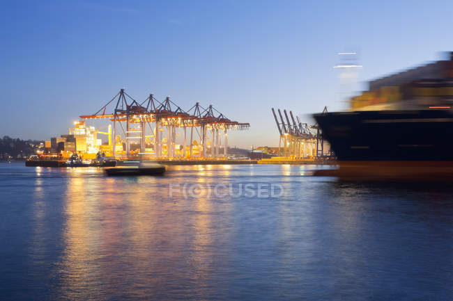 Великий торговельний порт контейнер і суден у воді. — стокове фото