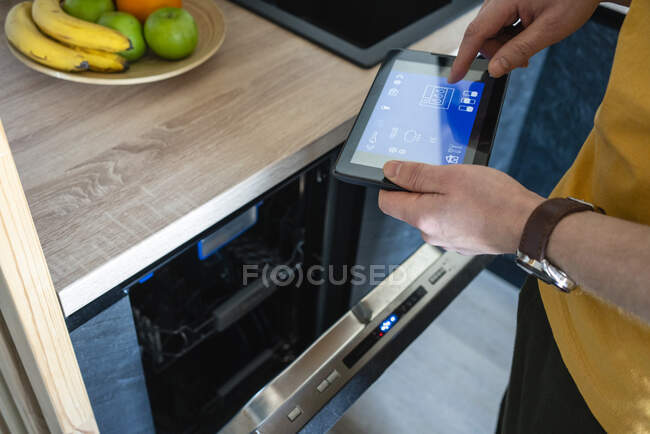 Чоловік фотографує квартиру, що лежить на телефоні — стокове фото