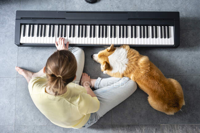 Чоловік грає зі своєю дочкою, працюючи вдома над самоізоляцією — стокове фото
